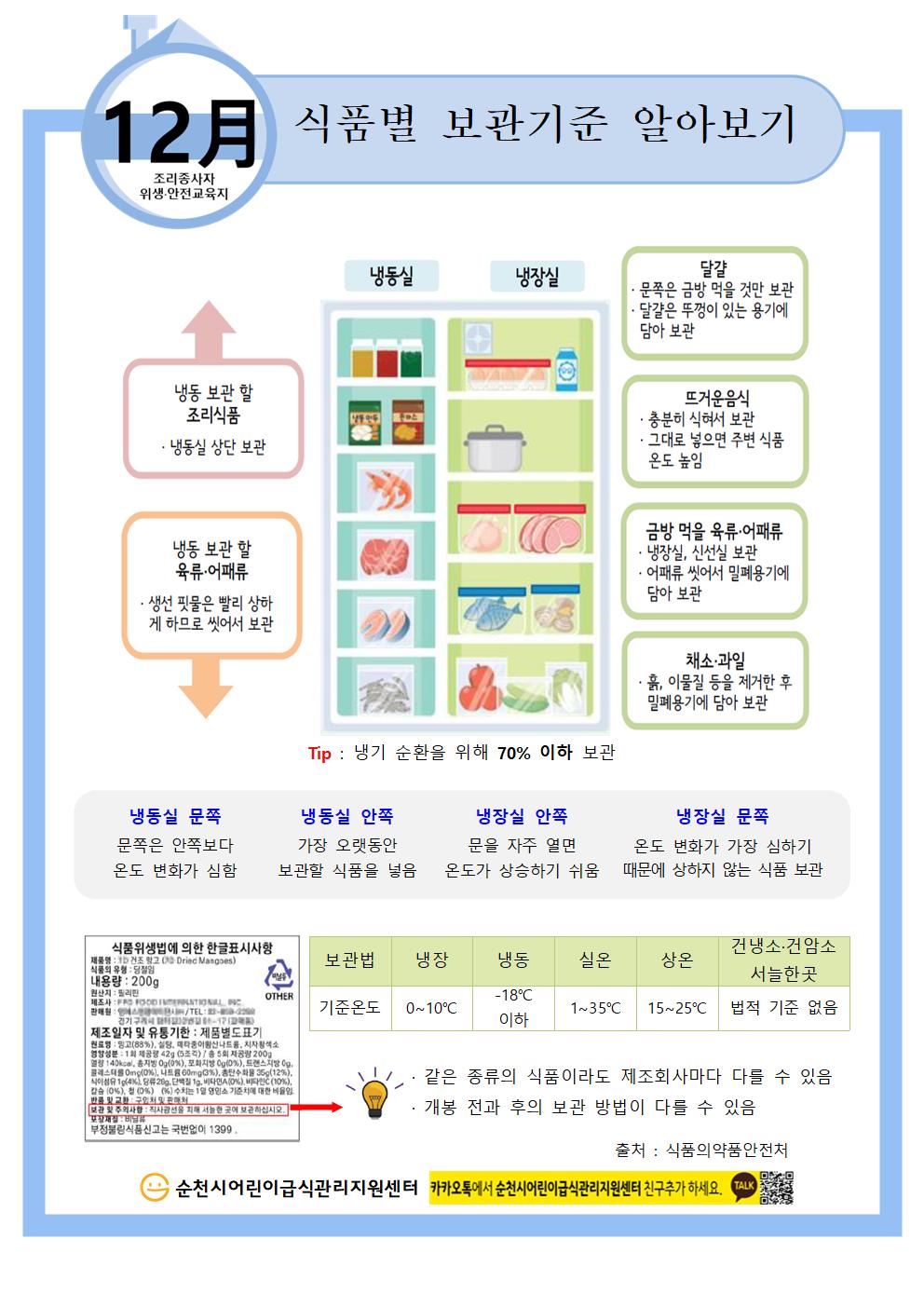 조리종사자 윙생안전교육-식품별 보관기준 알아보기