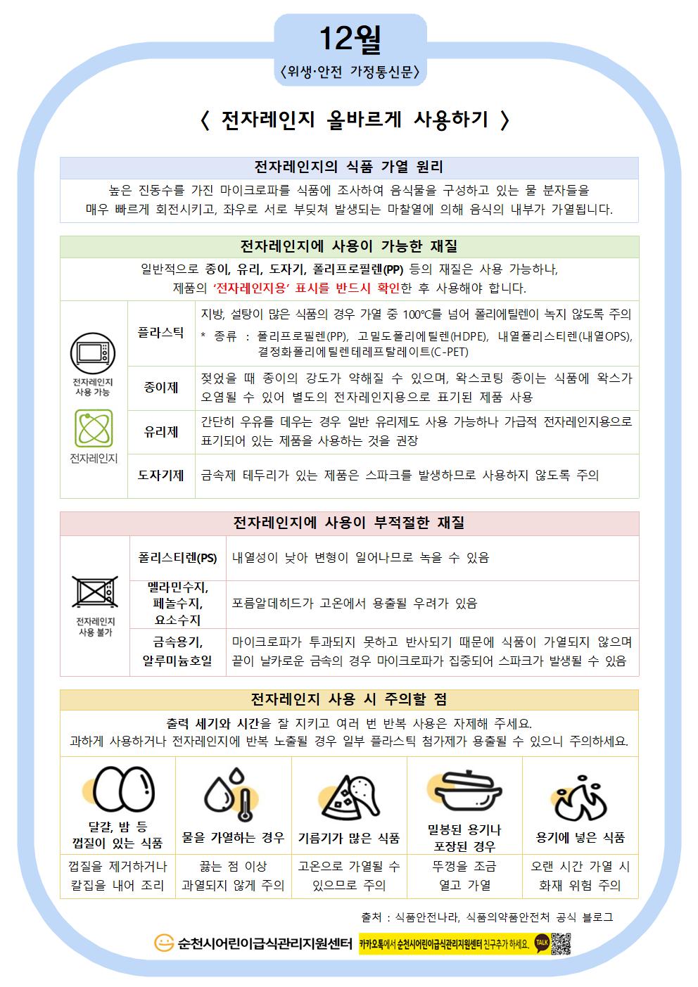 위생안전 가정통신문-전자레인지 올바르게 사용하기