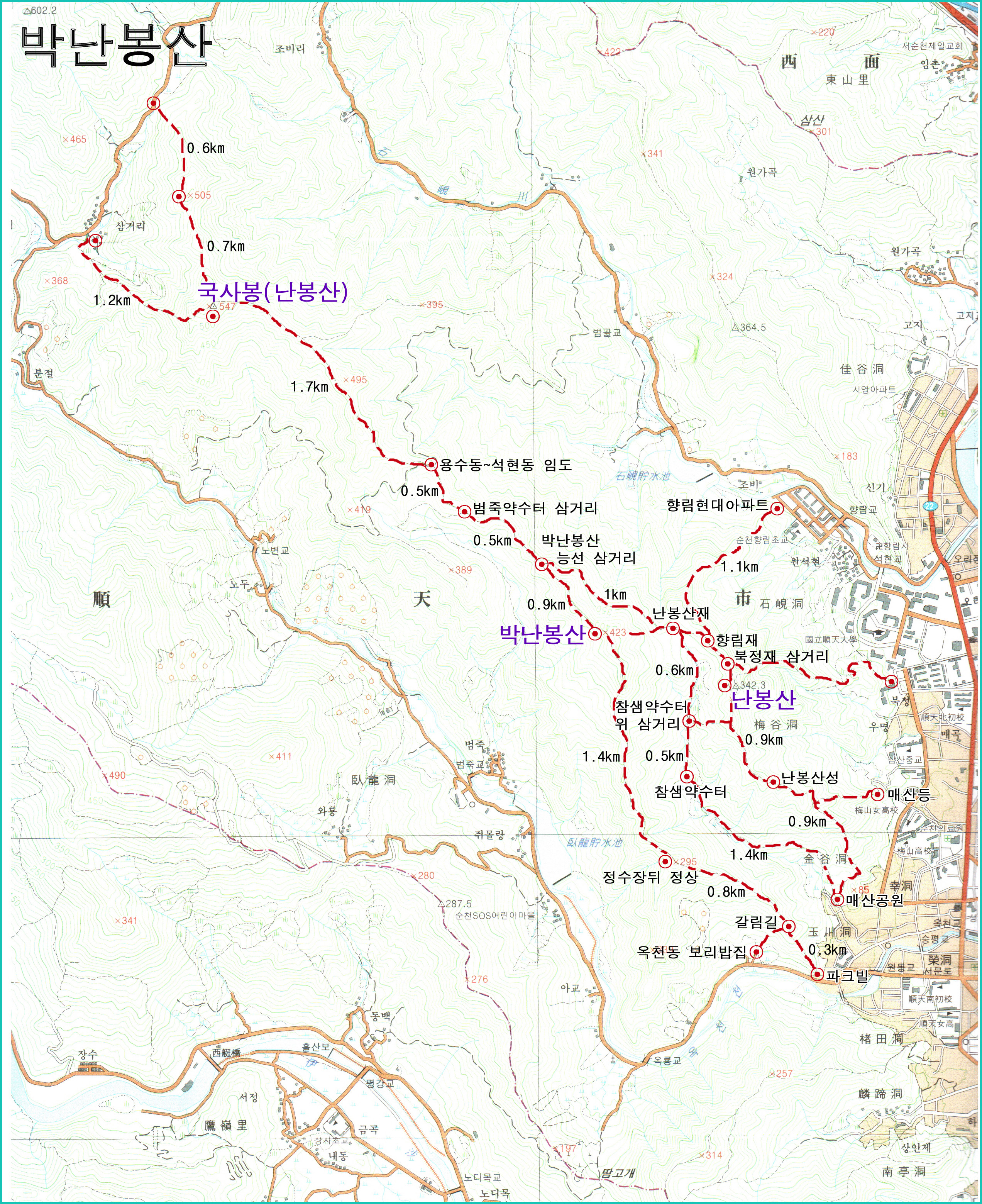 - 정수장뒤정상(295m봉) - 박난봉산 : 1.4km