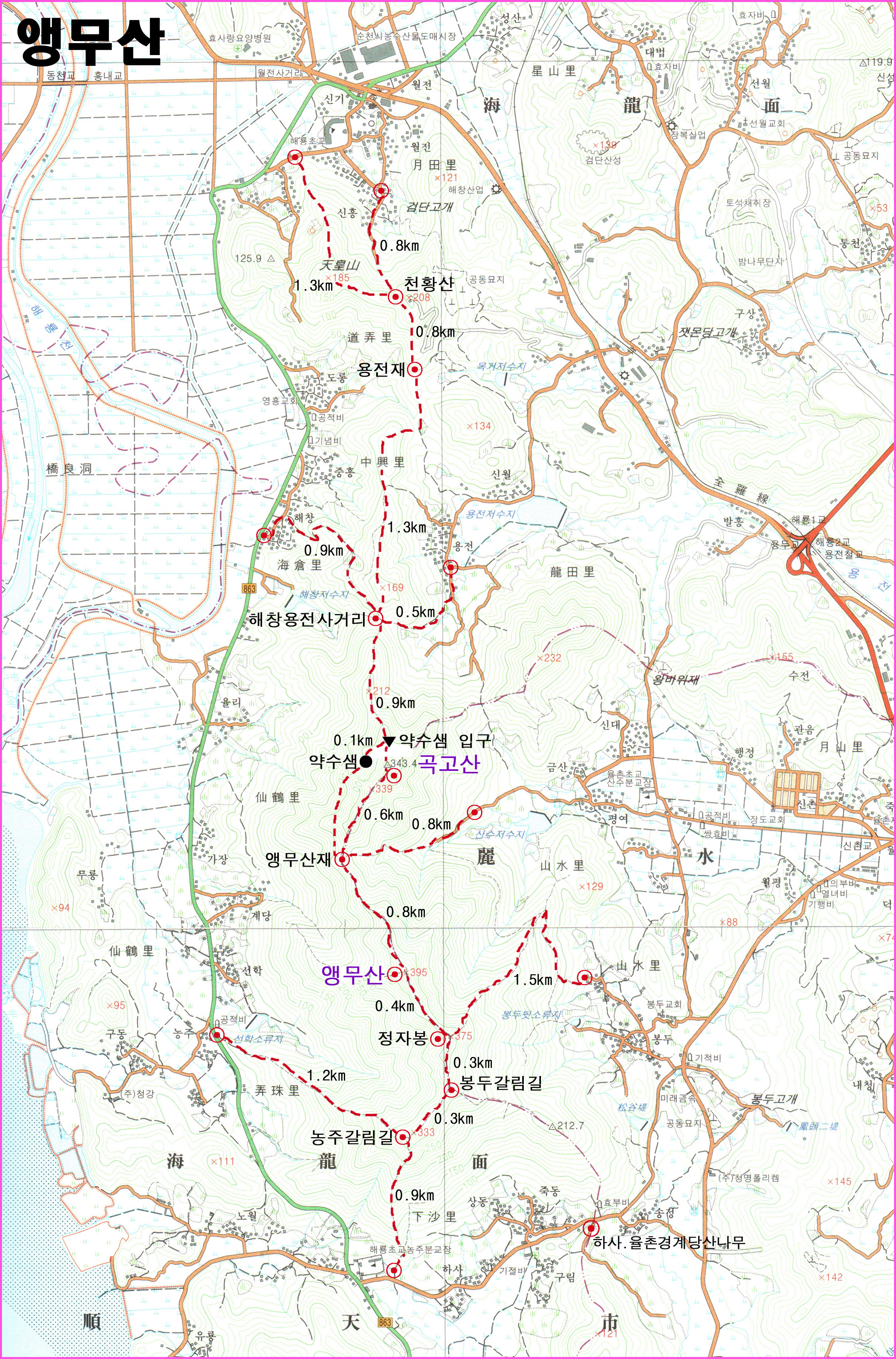 - 해룡면사무소 - 신기마을 들머리 : 0.5km