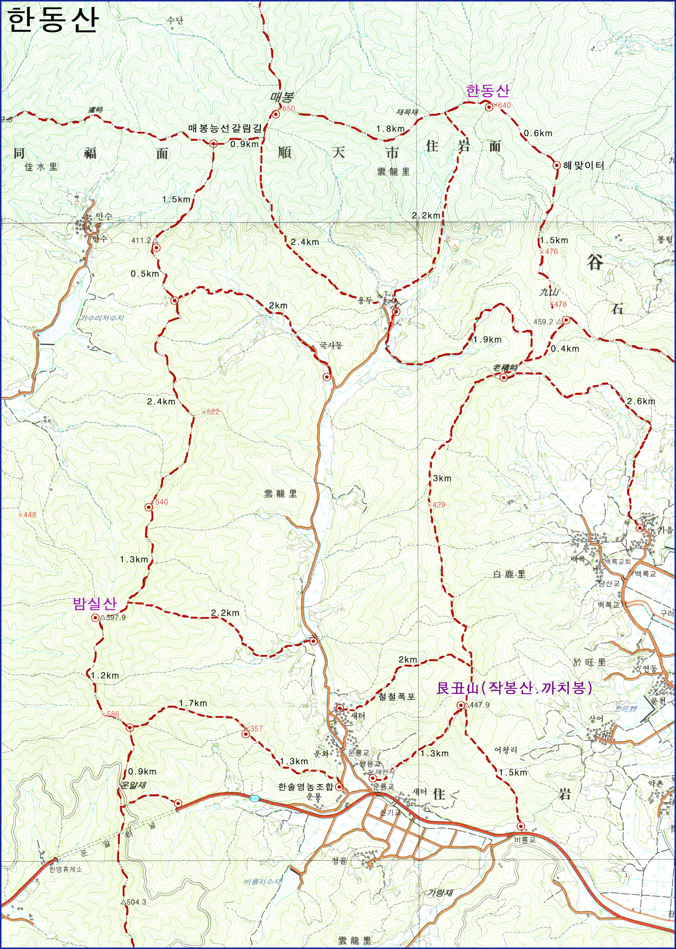 - 용두 - 재목재 위 능선 - 한동산 : 2.2km