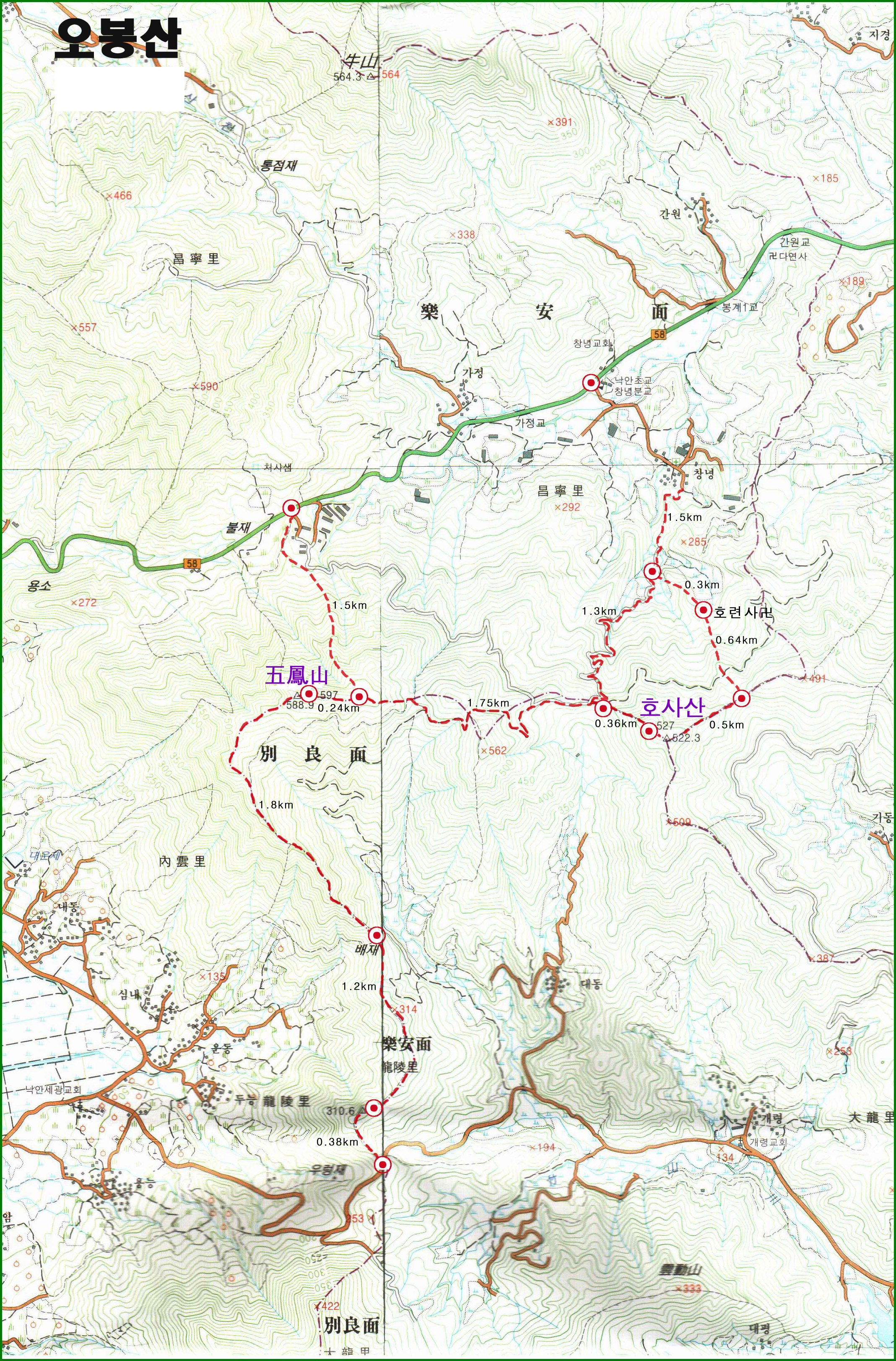 - 배재 - 오봉산 : 1.8km