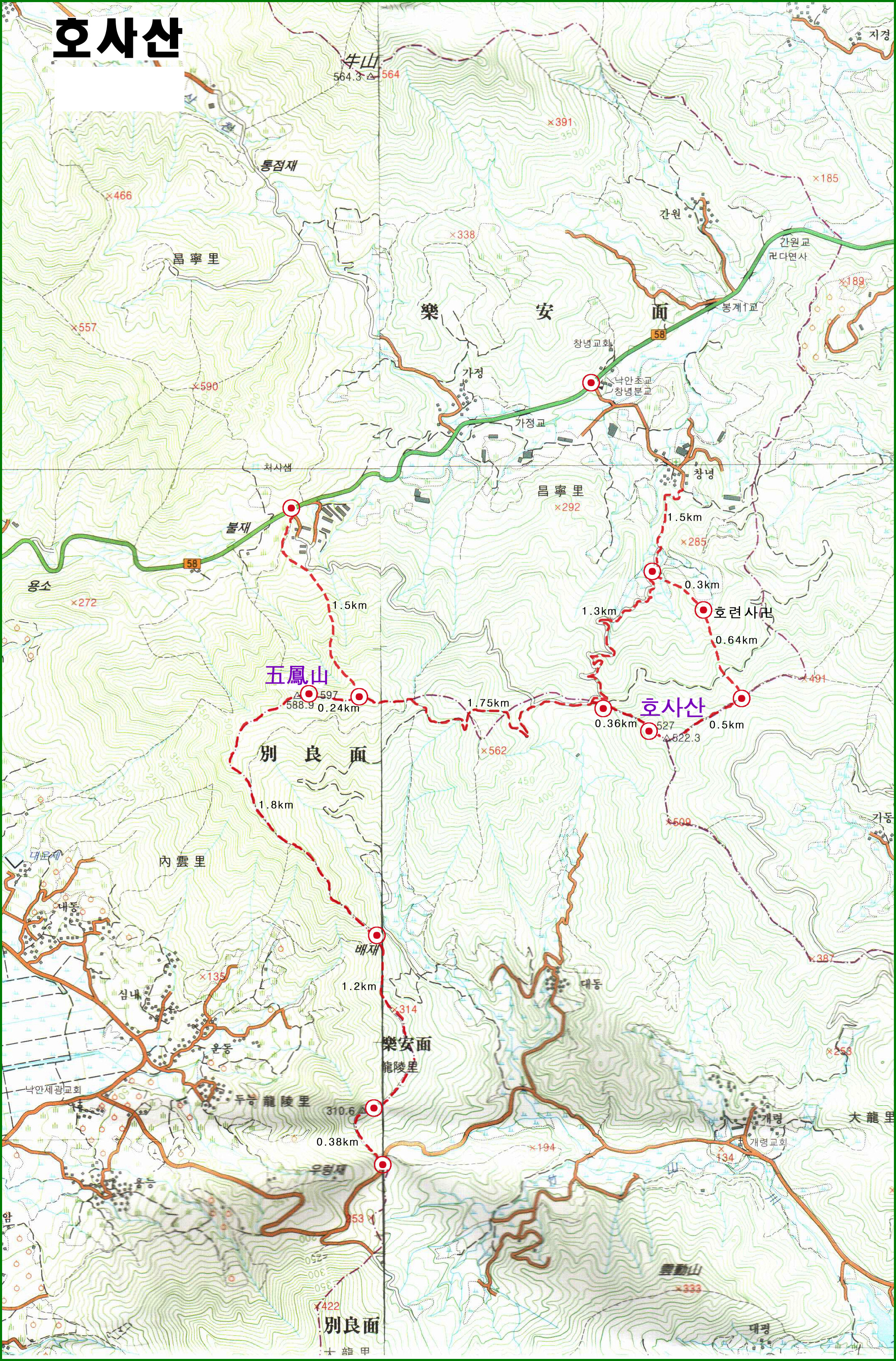 - 창녕입구(58번지방도) - 임도갈림길 : 1.5km