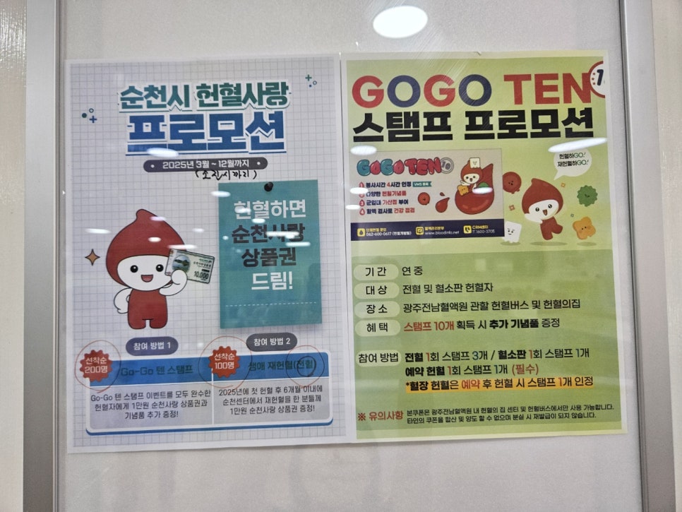 2025. 3.부터는 순천시 헌혈사랑 프로모션이 진행되고 있어,