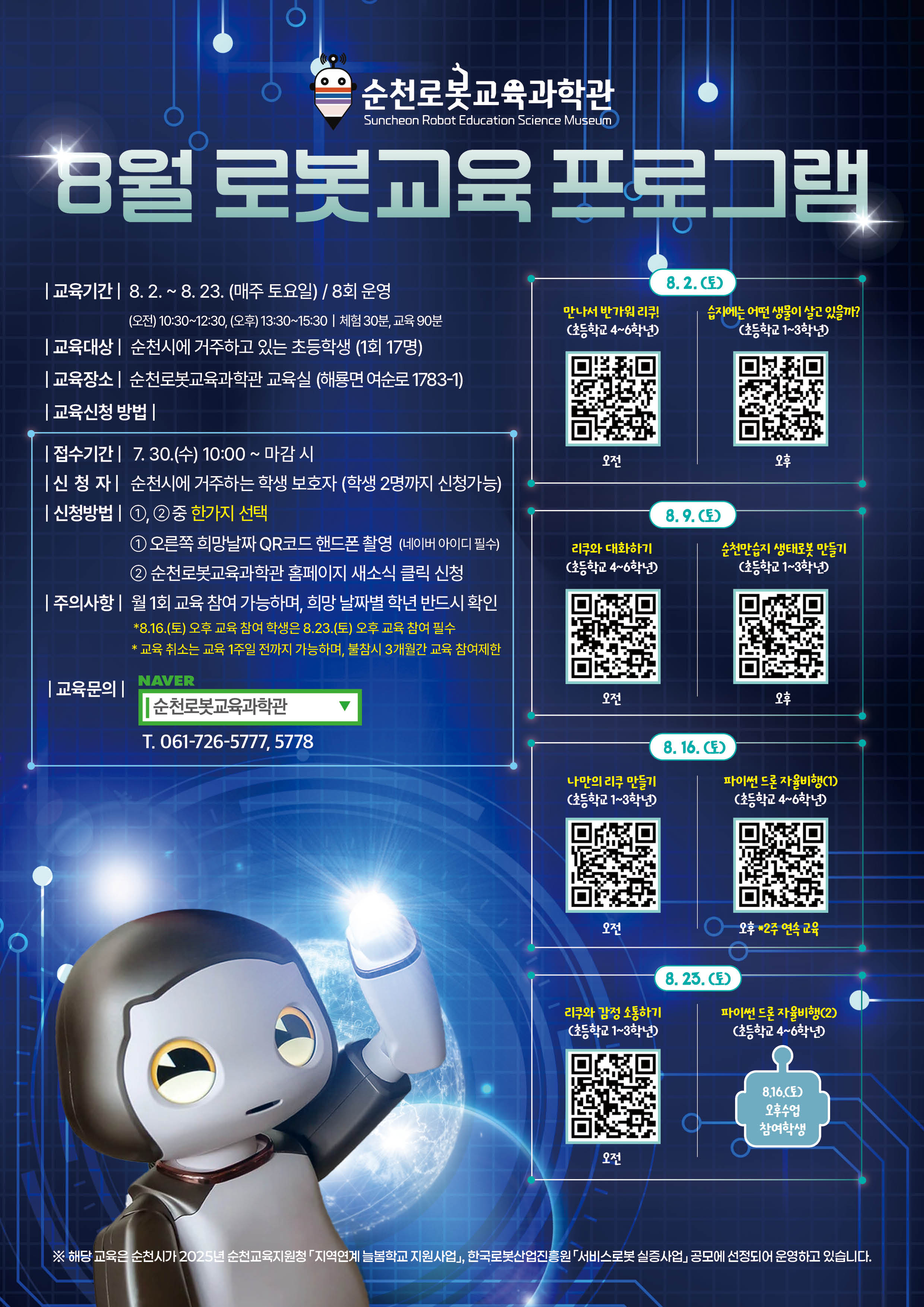 * 홈페이지 주소 : https://scrobot.kr 새소식「순천로봇교육과학관 주말 교육프로그램 안내」