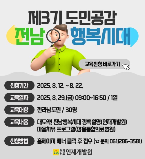 전라남도인재개발원「제3기 도민공감! 전남행복시대」교육과정 안내