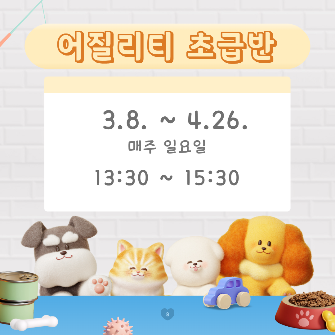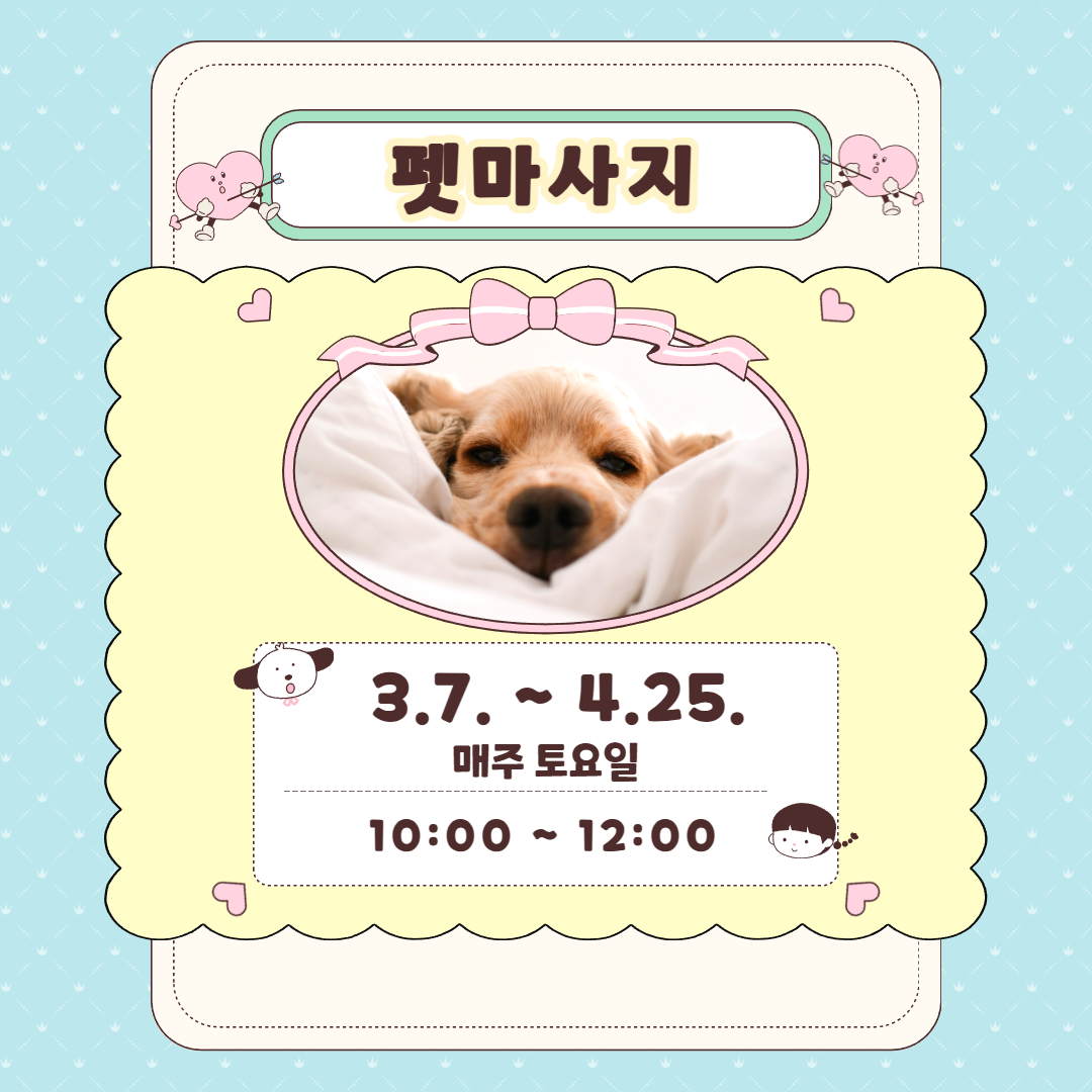 - 동물등록 및 예방접종이 되어 있는 반려견만 시설에 입장할 수 있습니다.
