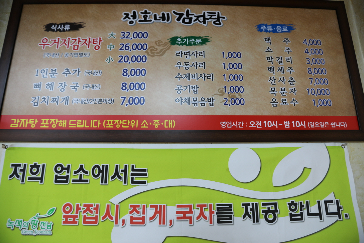 모든 식자재(돼지등뼈,감자,김치,쌀,우거지,반찬재료,쌈배추 등)를 지역 농,축산물 업체를 이용하여 순수 국내산만을 사용하여 직접 육수와 고기 반찬을 그날 그날 만들어 손님들에게 제공하는 건강한 음식점으로 계절별 주변 시골 농가에서 재료를 제공받아 더욱더 신선하고 믿을 수 있는 음식들을 제공하려 노력하는 음식점입니다.