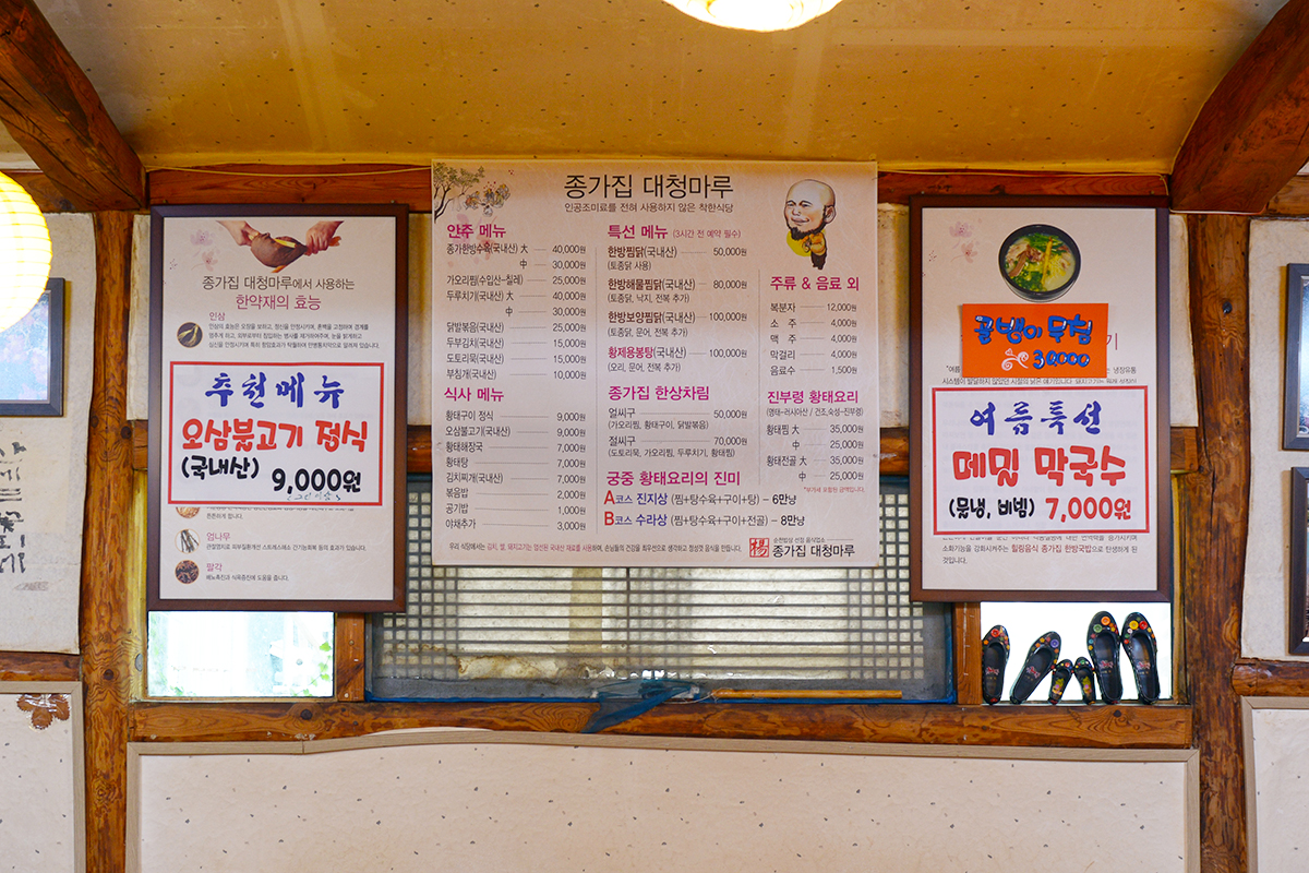 [순천시 음식경연대회 2년 연속 우수상 수상 업소입니다. 저희 종가집대청마루는 인공조미료를 사용하지 않습니다.] "한잔 술에 세상담고 두잔 술에 번뇌담아 독약청청 부어보세 명월속에 술과안주 진시황이 부러우리 석잔 술은 희망주요 넉잔 술은 화합주라 잔이 닳아 없어져도 님과 사랑 변함없네"