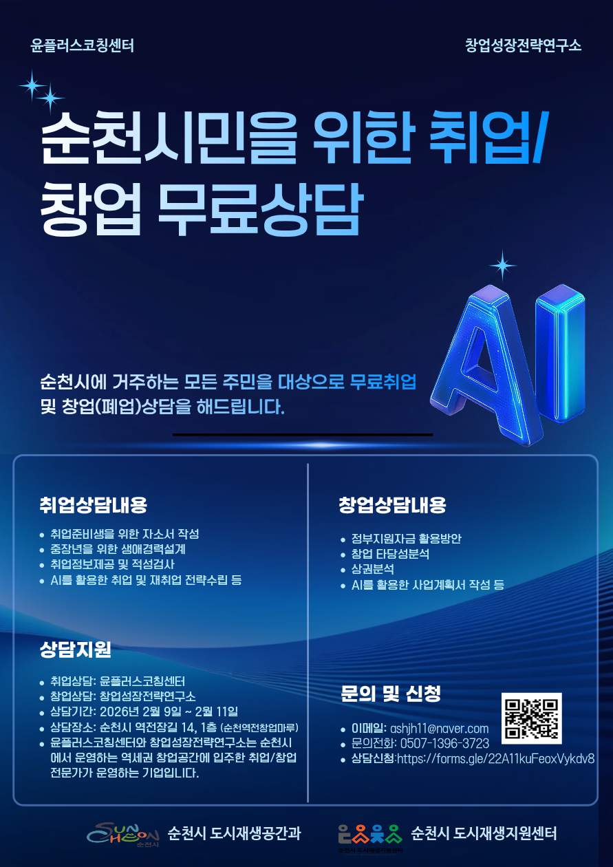 2026년 순천 시민을 위한 취업/창업 전문가 상담을 무료로 진행합니다 ~~~
