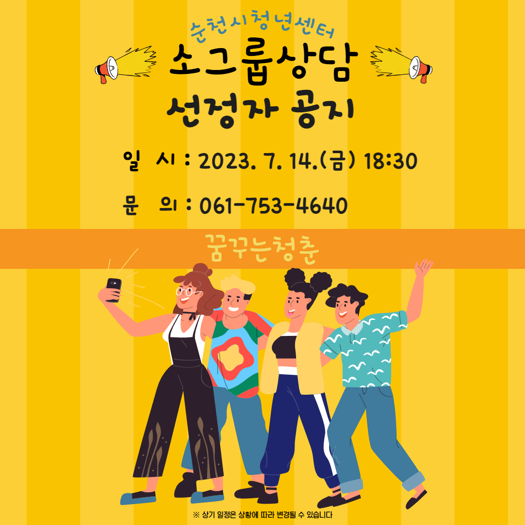 2023. 7. 14.(금) 진행하는 "소그룹상담" 선정자 공지해드립니다.