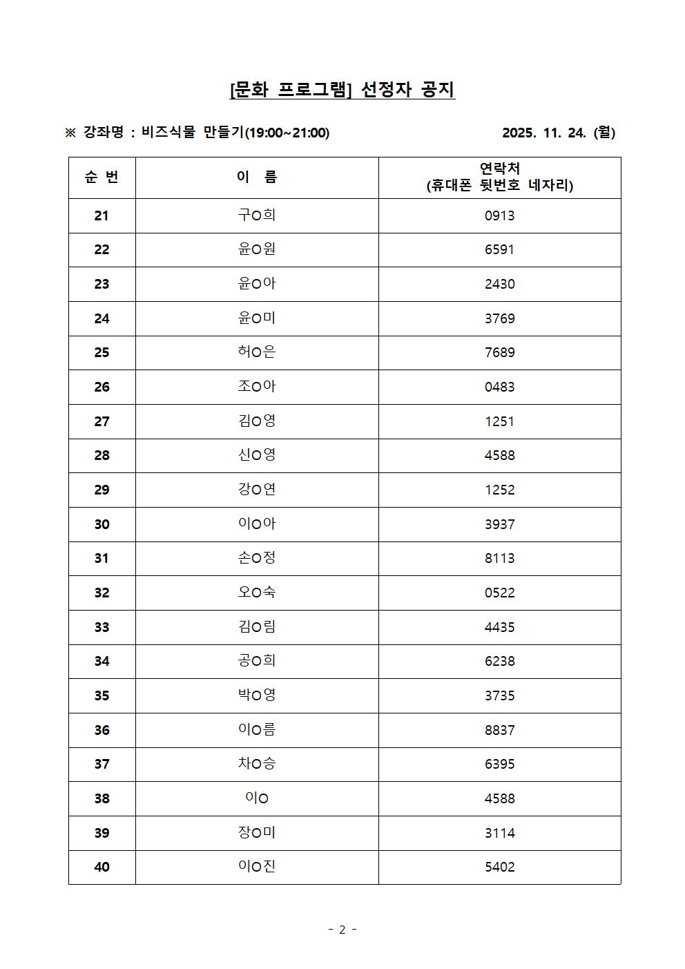 선정자분들에게는 안내문자가 발송될 예정입니다.